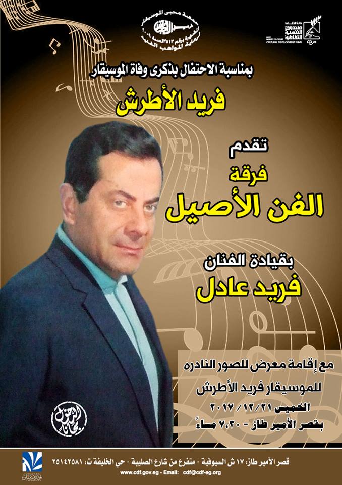 إحياء ذكري الموسيقار فريد الأطرش بقصر طاز الخميس