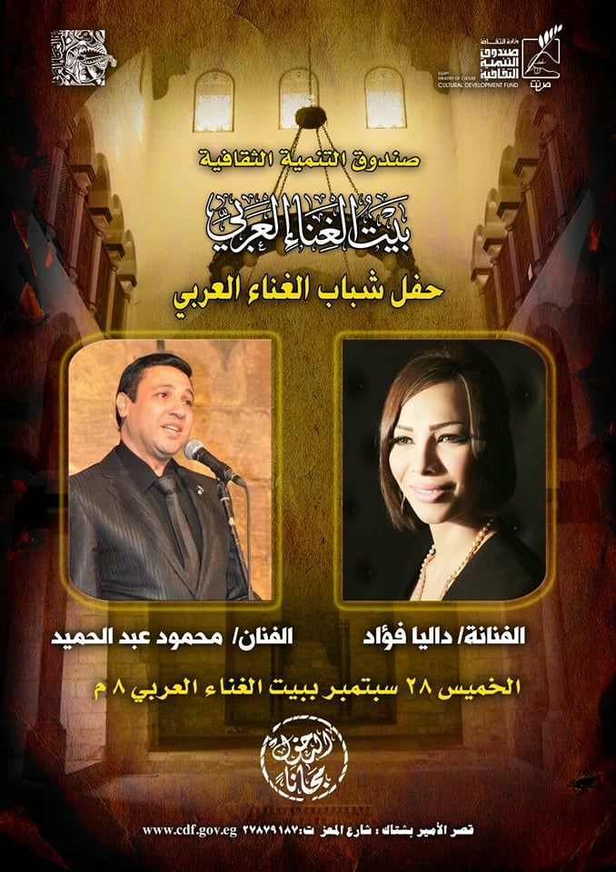 حفل شباب بيت الغناء العربي بقصر باشتاك الخميس القادم داليا فؤاد ومحمود عبد الحميد يستعيدان أغاني الزمن الجميل