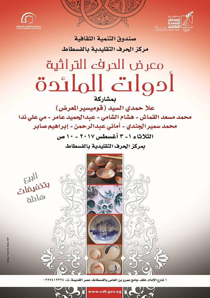 مد معرض أدوات المائدة بمركز والحرف التقليدية بالفسطاط حتي السبت 5 أغسطس