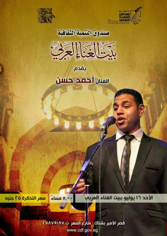 حفل فني للصوت الذهبي أحمد حسن الأحد القادم بقصر بشتاك