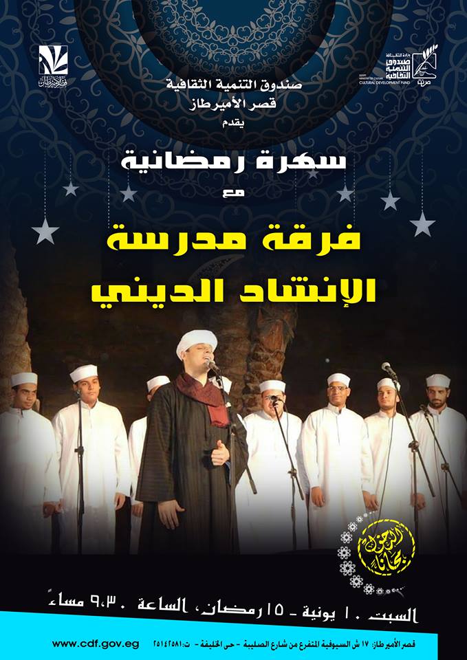 محمود التهامي وفرقة الإنشاد الديني بقصر الأمير طاز السبت القادم