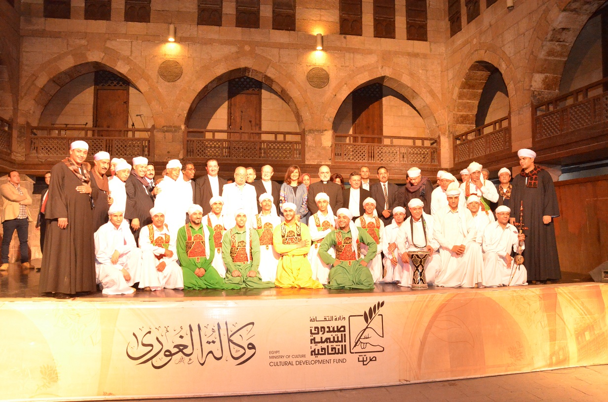 وزيرا الثقافة والهجرة ووفد مجلس أساقفة وممثلي الكنائس الشرقية يشهدون عرض التنورة التراثية بوكالة الغوري