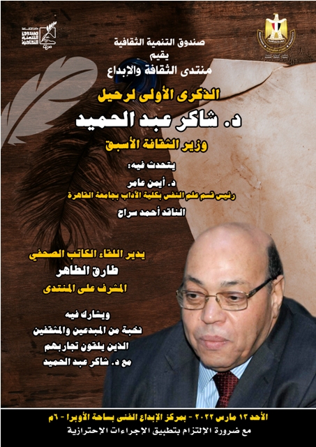 منتدي الثقافة والابداع يحي الذكري الأولي لرحيل شاكر عبد الحميد