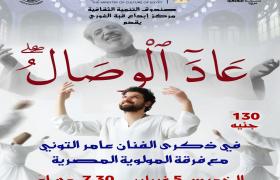 في إطار توجهات وزارة الثقافة للحفاظ على التراث الفني والروحي المصري، ينظم قطاع صندوق التنمية الثقافية، من خلال مركز إبداع قبة الغوري بحي الغورية، عرضًا فنيًا بعنوان «عاد الوصال»، وذلك مساء غدٍ الخميس 5 فبراير في تمام الساعة 7:30 مساءً، إحياءً لذكرى الفنان الراحل عامر التوني، مؤسس فرقة المولوية المصرية، وأحد أبرز المجددين في فنون الإنشاد والموسيقى الصوفية في مصر.