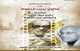 تستضيف قاعة سينما الهناجر، التابعة لقطاع صدوق التنمية الثقافية، صالون نجيب محفوظ، والذي يديره الروائي الكبير الأستاذ يوسف القعيد، ويشاركه اللقاء الفنانة آثار الحكيم، الناقد شعبان يوسف، والروائية هالة البدري، وذلك السادسة مساء الأحد 11 ديسمبر الجاري،