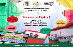 بمناسبة أجازة نصف العام الدراسي، يقيم مركز إبداع الطفل "بيت العيني"، التابع لقطاع صندوق التنمية الثقافية، مجموعة من الأنشطة الترفيهية والثقافية والفنية تحت شعار "أجازتك عندنا"، وذلك الحادي عشر صباح الجمعة 20 يناير.