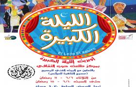 في إطار احتفالات قطاع صندوق التنمية الثقافية برئاسة الدكتور أحمد عواض، بشهر رمضان الكريم، تحت عنوان، الإبداع في مواجهه الإرهاب، يقدم مركز طلعت حرب الثقافي، أوبريت " الليلة الكبيرة" ، في التاسعة والنصف من مساء الثلاثاء 11 رمضان الموافق 6 يونيو، وتستمر العروض حتي السبت 15 رمضان 10 يونيو.