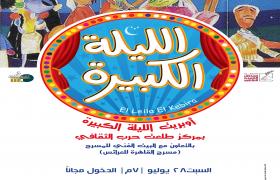 في إطار العروض الفنية التي يقدمها صندوق التنمية الثقافية، يقدم مركز طلعت حرب الثقافي" بالسيدة نفسية " في السابعة مساء السبت 28 يوليو، أوبريت "الليلة الكبيرة" من انتاج البيت الفني للمسرح.