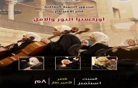 تحت رعاية الاستاذة الدكتورة ايناس عبد الدايم وزير الثقافة يقيم قطاع صندوق التنمية الثقافية حفل لفرقة أوركسترا "النور والأمل" وذلك فى الثامنة مساء مساء السبت 1 سبتمبر بقصر "الأمير طاز" – بحي الخليفة - .