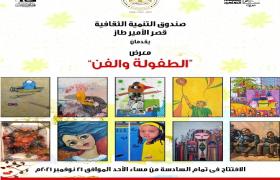 بمناسبة اليوم العالمي للطفل والذي يوافق العشرين من نوفمبر من كل عام، يقيم مركز ابداع قصر الأمير طاز " بحي الخليفة" ، التابع لقطاع صندوق التنمية الثقافية، في السادسة مساء الأحد 21 نوفمبر، معرضا تشكيليا بعنوان " الطفولة والفن " ، ويستمر لمدة اسبوعين .