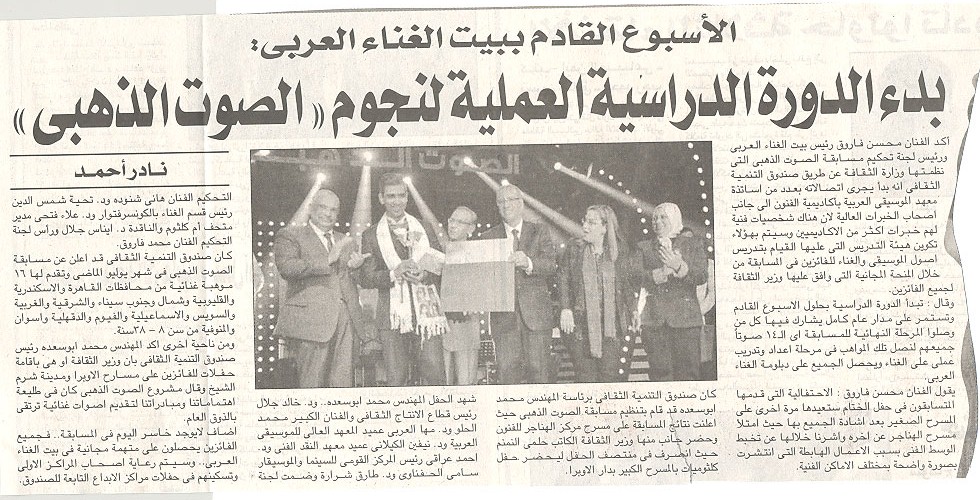 الأسبوع القادم ببيت الغناء العربى : بدء الدوؤة الدراسية العلمية لنجوم "الصوت الذهبى"