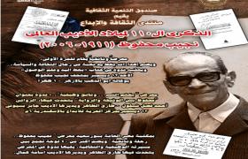 تحت رعاية أ.د ايناس عبد الدايم وزيرة الثقافة، وبمناسبة الذكرى الـ١١٠ لميلاد الأديب العالمى نجيب محفوظ، والتي توافق 11 ديسمبر 1911، يقيم (منتدى الثقافة والابداع)، الذى ينظمه قطاع صندوق التنمية الثقافية، ويشرف عليه الكاتب الصحفي طارق الطاهر، عدد من الفعاليات الثقافية بثلاث محافظات.