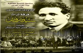 يأتي الحفل في اطار ذكري وفاة فنان الشعب سيد درويش والتي توافق العاشر من سبتمبر 1923، الحفل قيادة المايسترو محمد حسن درويش ، ويتضمن مجموعة من أشهر مؤلفاته منها : يا عشاق النبي ، عين الحسود، قوم يا مصري ، بلادي بلادي، فيها حال من الأحوال من رواية شهرزاد .
