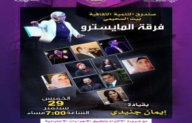 يستضيف مركز ابداع بيت السحيمي بشارع المعز، التابع لقطاع صندوق التنمية الثقافية، حفل فرقة (المايسترو)  بقيادة إيمان جنيدي، وذلك في السابعة مساء الخميس 29 سبتمبر 2022.
