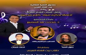 بمناسبة الإحتفال بذكري ميلاد المطرب الراحل كارم محمود، يقيم بيت الغناء العربي بقصر الأمير بشتاك "بشارع المعز" التابع لقطاع صندوق التنمية الثقافية في السابعة والنصف مساء الخميس 6 فبراير الحفل الشهري لشباب الغناء العربي . لدعم الشباب للموهوبين الفائزين في مسابقة (الصوت الذهبي)، الحفل قيادة أ. د . مدحت عبد السميع
