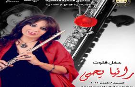 بمناسبة احتفالات وزارة الثقافة بذكرى انتصارات أكتوبر المجيدة، وذكرى المولد النبوي الشريف، يقيم مركز الحرية للإبداع بالإسكندرية التابع لقطاع صندوق التنمية الثقافية، حفل لعازفة الفلوت الفنانة الدكتورة رانيا يحيى، وذلك في الثامنة مساء السبت ٨ أكتوبر بقاعة المسرح بالمركز.