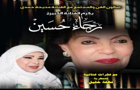 تستضيف قاعة سينما مركز الإبداع الفني ـ بساحة الأوبرا ـ التابعة لقطاع صندوق التنمية الثقافية، في السادسة مساء السبت 13 مارس، أمسية جديدة من أمسيات صالون الفنانة مديحة حمدي الثقافي، والذى يستضيف الفنانة الكبيرة "رجاء حسين".