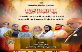 يقيم (بيت الغناء العربي) بمقره بقصر الأمير بشتاك بشارع المعز -التابع لصندوق التنمية الثقافية برئاسة د. نيفين الكيلانى - احتفالا غنائيا بمناسبة اليوم العالمي للشباب، تحييه نخبة من الأصوات الشابة الفائزة بمسابقة "الصوت الذهبي"، وذلك فى التاسعة مساء اليوم (الخميس 25 أغسطس).