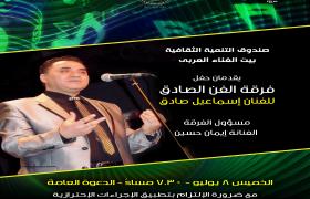 يقيم بيت الغناء العربي بقصر الأمير بشتاك "بشارع المعز" - التابع لقطاع صندوق التنمية الثقافية- أمسية جديدة من الأمسيات الطربية المتميزة ، حيث يلتقى محبي الطرب الأصيل فى السابعة والنصف مساء الخميس (8 يوليو) مع الحفل الغنائى الذى تقدمه فرقة "الفن الصادق" ، وذلك مع تطبيق كافة الإجراءات الوقائية .