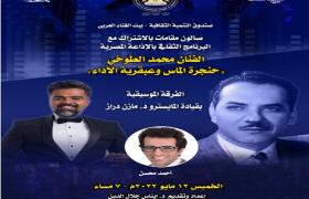 يقيم بيت الغناء العربي " بقصر الأمير بشتاك" بشارع المعز ، التابع لقطاع صندوق التنمية الثقافية ، في السابعة مساء الخميس 12 مايو ، صالون مقامات، بالاشتراك مع البرنامج الثقافي بالاذاعة المصرية ، ويحمل هذا الشهر عنوان " الفنان محمد الطوخي حنجرة الماس وعبقرية الأداء "، ويتحدث في الصالون حفيده المطرب الفنان أحمد محسن .