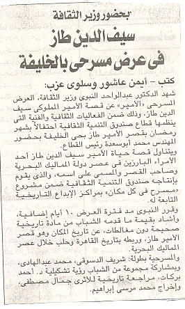 بحضور وزير الثقافة .. سيف الدين طاز فى عرض مسرحى بالخليفة