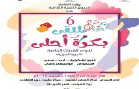 ينظم قطاع صندوق التنمية الثقافية ، بالتعاون مع قطاع العلاقات الثقافية الخارجية ، الدورة السادسة من ملتقي "بكرة أحلي " لذوي القدرات الخاصة ، في الفترة من 3 وحتي 6 ديسمبر 2018.