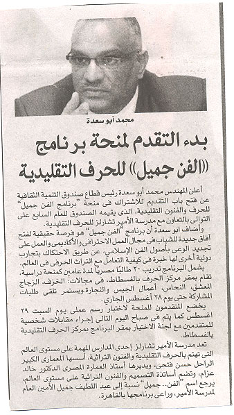 بدء التقدم لمنحة برنامج " الفن جميل" للحرف التقليدية