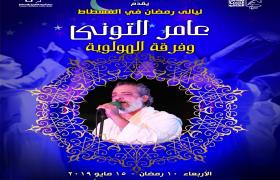 فى إطار البرنامج الثقافى والفنى الذى يقيمه قطاع صندوق التنمية الثقافية بمناسبة شهر رمضان، تفتتح مساء الأربعاء 15 مايو الموافق 10 رمضان أولى الحفلات الفنية والثقافية التى يقدمها المنشد "عامر التونى" وفرقة (المولوية المصرية)، بمركز الحرف التقليدية بالفسطاط– خلف جامع عمرو بن العاص يتضمن برنامج الحفل مجموعة من التواشيح والإبتهالات الدينية أبرزها "زدنى بفرط الحب فيك، يا مليحا قد تجلى، ملكتم قلبى وعقلى ومسمعى، يانفس عن الحب لا تتوقف وهانت الأرواح " .