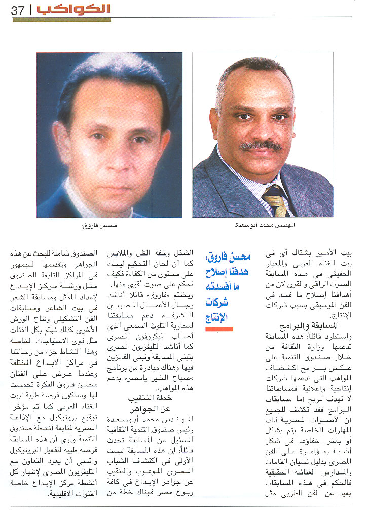 تحت رعاية صندوق التنمية الثقافيىة " الصوت الذهبى" إعادة إكتشاف المواهب المصرية