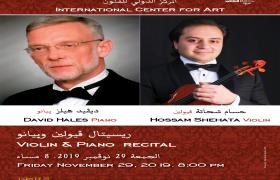 حيث يقدم الفنان حسام شحاتة بالإشتراك مع عازف البيانو البريطانى ديفيد هيلز ريسيتال الفيولينة والبيانو، يتضمن برنامج الحفل عدد من الأعمال لكبار الموسيقيين العالميين:"تارتينى، موتسارت وفاينيافسكى" بالإضافة إلى مقطوعات أخرى لبراهمز وساراساتى" .