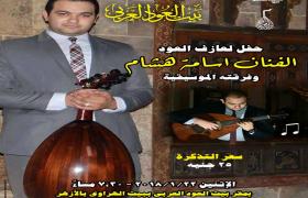 يقيم مركز إبداع بيت العود العربى " ببيت الهراوي"، التابع لقطاع صندوق التنمية الثقافية، فى السابعة مساء الإثنين 22 يناير، حفل "أساتذة بيت العود العربى" للفنان " أسامة هشام " وفرقتة الموسيقية.