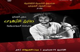 يقيم مركز إبداع " بيت العود العربى " ببيت الهراوى التابع لقطاع صندوق التنمية الثقافية ، فى الثامنة مساء الإثنين 24 سبتمبر ، حفل "اساتذة بيت العود العربى" يقدمها الفنان " طارق الأزهرى " الأستاذ ببيت العود وفرقتة ، يتضمن الحفل مجموعة من مؤلفات الفنان الموسيقية ، منها غلبت اصالح لأم كلثوم، موجه صحرا لحتزم شاهين نسمات عذبة لنصير شمة ، بالإضافة علدد من المقطوعات الموسيقية للعديد من مدارس العود المختلفة المصرية والعراقية إضافة لمجموعة متنوعة من الأعمال العالمية ، يقدم الحفل تحت إشراف الفنان نصير شمه.