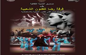 يقيم مركز ابداع قبة الغوري " بشارع الأزهر" التابع لقطاع صندوق التنمية الثقافية، في الثامنة مساء الخميس 24 مارس ، حفل جديد لفرقة رضا للفنون الشعبية، بالتعاون مع البيت الفني للفنون الشعبية والاستعراضية .