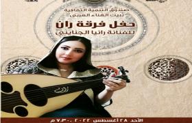 يقيم مركز ابداع بيت الغناء العربي " بقصر الأمير بشتاك "، التابع لقطاع صندوق التنمية الثقافية، في السابعة والنصف مساء الأحد 28 أغسطس ، حفل فرقة " ران " للفنانة رانيا الجنايني .