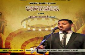 يقيم بيت الغناء العربي، التابع لقطاع صندوق التنمية الثقافية برئاسة الدكتور أحمد عواض، حفل فني للصوت الذهبي الفنان أحمد حسن، وذلك في الثامنة مساء الأحد 16 يوليو، بقصر الأمير بشتاك بشارع المعز