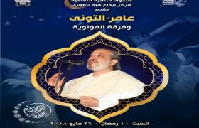 في إطار الفعاليات الفنية والثقافية التي ينظمها قطاع صندوق التنمية الثقافية، بمناسبة شهر رمضان الكريم، والتي تحمل شعار " الإبداع يجمعنا"، حيث يقام فى التاسعه والنصف مساء السبت 26 مايو ( 10 رمضان) حفل " المولوية " للفنان عامر التونى بمركز إبداع قبة الغورى