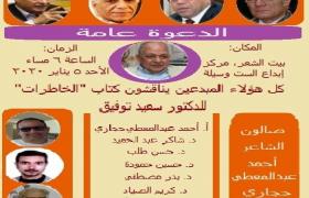 يناقش الصالون هذا الشهر كتاب "الخاطرات" للدكتور سعيد توفيق ، يشارك فيه عدد من الشعراء والنقاد منهم: د. شاكر عبد الحميد، د. حسن طلب، د. حسين حمودة ،د. بدر مصطفى، و د. كريم الصياد