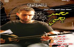 يقيم مركز إبداع بيت العود العربي " ببيت الهراوي" خلف الجامع الأزهر، التابع لقطاع صندوق التنمية الثقافية، في السابعة والنصف مساء الأربعاء 10 مارس، حفل أساتذة بيت العود العربي، للفنان "محمد يحيى"، مع تطبيق كافة الإجراءات الوقائية.