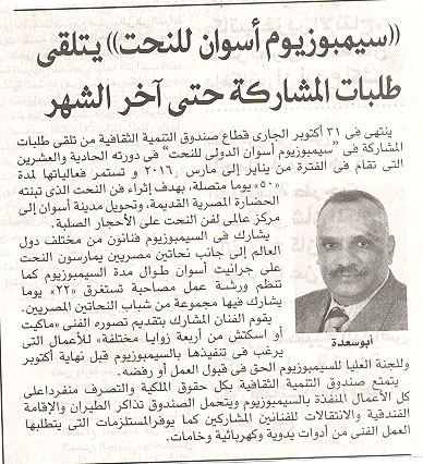"سيمبوزيوم أسوان للنحت " يتلقى طلبات المشاركة حتى آخر الشهر