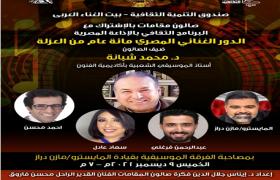 يحاضر في الصالون أ. د محمد شبانة أستاذ الموسيقي الشعبية بأكاديمية الفنون ، وحديث حول " الدور" الغنائي واسباب اختفائه من الساحة الفنية.