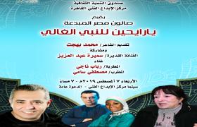 بمناسبة الإحتفالات بعيد الأضحى المبارك، يقيم قطاع صندوق التنمية الثقافية أمسية جديدة للصالون الثقافى الشهرى: "مصر المبدعة" تحت عنوان "يا رايحين للنبي الغالي"، وذلك في السابعة مساء الأربعاء 7 أغسطس بسينما مركز الإبداع الفني ..