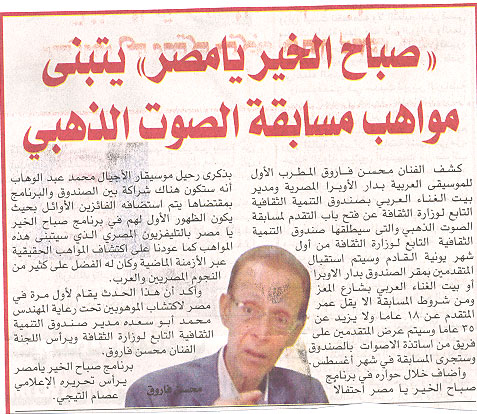 " صباح الخير يا مصر " يتبنى مواهب مسابقة الصوت الذهبى