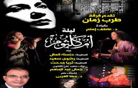 يقيم متحف أم كلثوم " بقصر المانسترلي" بمنيل الروضة، التابع لقطاع صندوق التنمية الثقافية، في الثامنة مساء الخميس 27 ديسمبر، بمناسبة ذكري ميلاد كوكب الشرق حفل فني لفرقة "طرب زمان".
