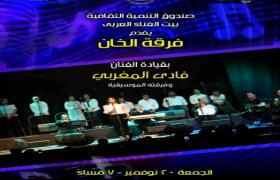 يقيم مركز إبداع قصر الأمير بشتاك بشارع المعز - التابع لقطاع صندوق التنمية الثقافية حفل "فرقة الخان" قيادة الفنان/ فادي المغربي، وذلك في السابعة مساء الجمعة 20 نوفمبر 2020.