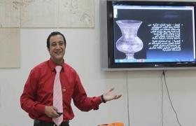 قدم الاستاذ الدكتور مصطفى عبد الرحيم ندوة بعنوان "الزخرفة العربية النباتية " وتضمنت انواع التوريق والمصطلحات والنظم البنائية للزخرفة، ثم استعرض خلال ورشة عملية اهم النقوش الزخرفية النباتية واستخدامات كلآ منها.