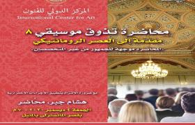 تبدأ محاضرات الموسم الثاني بالمركز الدولي للفنون "بقصر المانسترلي" التابع – لقطاع صندوق التنمية الثقافية- حيث يقوم المايسترو والمؤلف الموسيقى هشام جبر، مدير المركز بإلقاء سلسلة المحاضرات الشيقة عن الموسيقى العالمية، وذلك فى السابعة مساء الجمعة 4 ديسمبر 2020، من خلال محاضرة بعنوان "مقدمة إلى العصر الرومانتيكي".