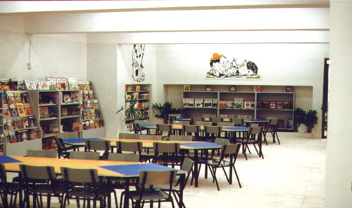 صالة مدخل واستعلامات - قاعة إطلاع أطفال قاعة إطلاع شباب -إدارة المكتبة قاعة هوايات وأنشطة - قاعة سمعبصرية مخزن وخدمات الحديقة ومنطقة الألعاب