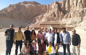 وأكد أ.د فتحي عبد الوهاب رئيس قطاع صندوق التنمية الثقافية أن ملتقي الأقصر الدولي قد وصل إلي مرحلة نضج فني كبيرة، وضح ذلك من نتاج الدورات الأخيرة، وايضا من طلبات المشاركة من الفنانين، واوضح "عبد الوهاب" أن الملتقي تحول الي " أكاديمية " فنية بما يحمله من زخم متمثل في الندوات والجولات الاثرية للمشاركين، فضلا عن تبادل الخبرات بين الفنانين الاساسيين وشباب الورشة المصاحبة وما تولده شرارة الإحتكاك الفني من وهج إبداعي، مشيرا الي أن شباب الورشة يقومون بانتاج لوحات لا تقل في جودتها الفنية عن المشاركين الأساسيين .