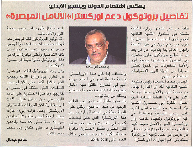 يعكس اهتمام الدولة ويشجع الإبداع : تفاصيل برتوكول دعم اوركسترا "الأنامل المبصرة"