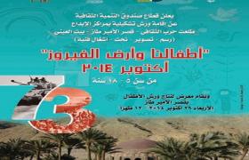 يضم المعرض - والذى يقام بعنوان "أطفالنا وأرض الفيروز" – أعمال فنية متنوعة من رسم ، تصوير ، نحت وأشغال فنية لمجموعة من شباب المراكز المشاركة (مركز طلعت حرب الثقافى – مركز إبداع الطفل ببيت العينى ، بالإضافة إلى شباب قصر الأمير طاز) تتراوح أعمارهم بين 5 وحتى 18 عاماً .